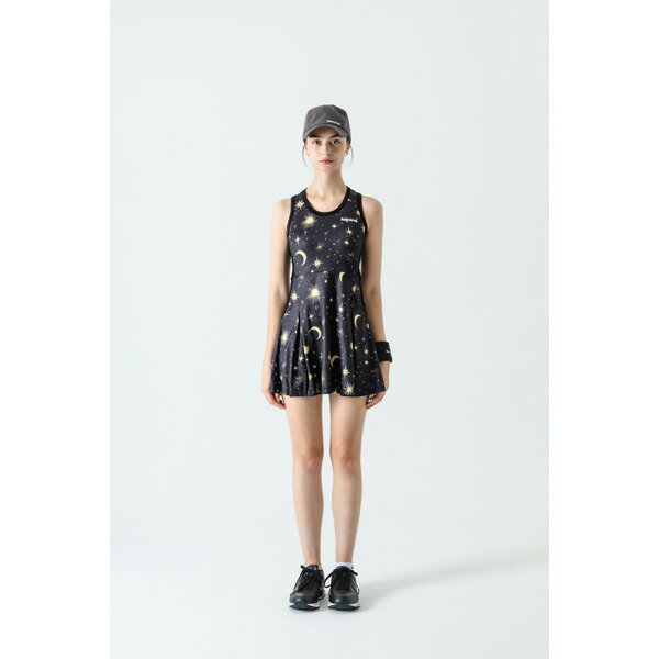 メーカーアドミラル 品番ATLA538-10 カラーブラック(10) サイズS/M/L/LL 対象性別レディース 素材ポリエステル87%,ポリウレタン13%/別布ポリエステル87%,ポリウレタン13% 機能吸水速乾/ストレッチ/UVカット 発売日2025年8月 定番の機能性ストレッチ素材を使用し、メインに大胆にグラフィックを施したワンピース。 大きめのボックスプリーツが動きに合わせて開き、ダイナミックな可動域をサポート。 襟と袖ぐり、脇にアクセントで無地を取り入れメリハリのあるデザインに。両脇ポケット有り。