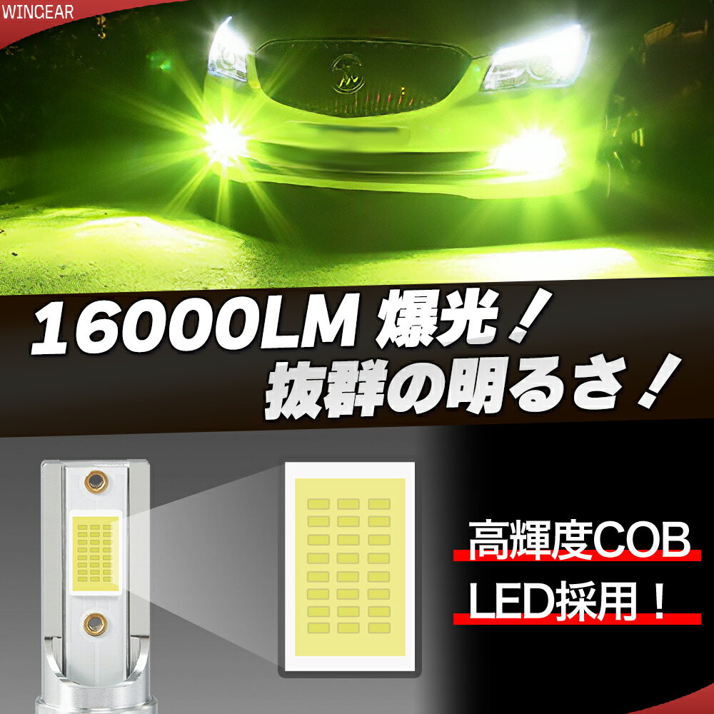 ホワイト ライムグリーン イエローグリーン イエロー LED フォグランプ フォグライト H4 H8 H11 H16 HB4 HB3 H3 アップルグリーン 16,000lm
