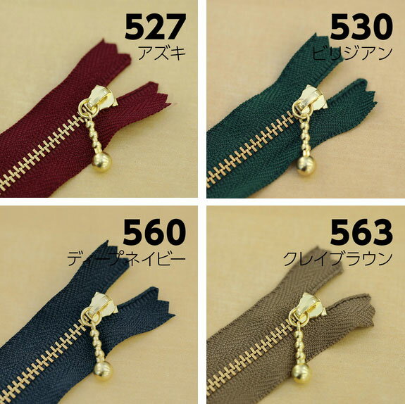 【お得10本SET】 YKK製ファスナー金属ゴールド 玉付きスライダー 止め 35cm 【14色展開】