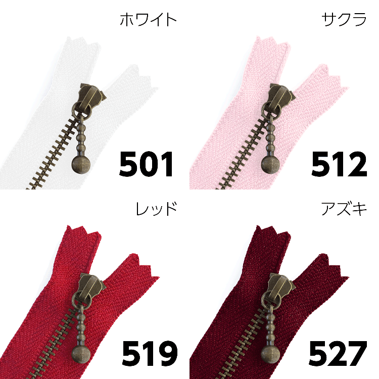 【お得10本入り】 25cm YKKファスナー 金属アンティックゴールド3号 玉付きスライダー 止め 【16色展開】
