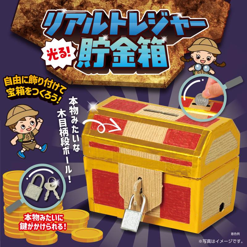 商品の説明 ⇒ 他のクラフト工作用品を見る 商品説明:本物みたいな宝箱をつくろう!木目柄のリアルな宝箱がつくれるキットです。イルミネーションライトと綿が付属しているので幻想的に光る貯金箱が完成します。本物の宝箱のように、鍵がかけられます。貯金箱としても使用できます。対象年齢:6歳以上。目安制作時間:45分(別途着色時間がかかります)。別途用意するもの:単3電池2本、水性ペン、鉛筆などの長い棒、はさみ、のり。宝箱 トレジャーボックス 鍵付き アンティーク 貯金箱 収納ボックス 着色可能 手作りキット ワークショップ キット 工作 クラフト 工作キット 自由工作 自由研究 図工 夏休み 冬休み 小学校 中学校 大人 趣味 手芸 ハンドメイド DIY 教材 イベント 景品 プレゼント おうち遊び 室内遊び注意:電池(単3電池2本)は別売りです。商品サイズ(単位mm):完成サイズ:約105×78×80mmセット内容:台紙×1、綿×1、イルミネーションライト×1、鍵セット×1、色紙(金)×1、両面テープ×1重量(g):104材質:台紙:紙、綿:ポリエステル、イルミネーションライト:PS・銅線包装形態:ヘッダー付き袋入り販売単位:セット生産国:日本パーティ・イベント衣装・コスチューム・ワークショップ・知育・おもちゃ・工作・自由研究・学校教材・教育・運動会・キット・備品・クラフト・アーテック/Artec 激安手芸用品通販店ウイングスだからできる問屋価格です ※工場からのお取り寄せになりますので、ご注文が確定してもタイミングにより売り切れ・入荷待ち状態である場合がございます。 ※お使いのディスプレイや環境によって画像のお色と異なる場合がございます。予めご了承お願いします。 ご注意 ※工場からのお取り寄せになりますので、ご注文が確定してもタイミングにより売り切れ・入荷待ち状態である場合がございます。 ※お使いのディスプレイや環境によって画像のお色と異なる場合がございます。予めご了承お願いします。