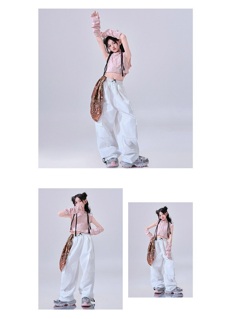 ピンク キッズ ダンス 衣装 トップス ヘソ出し チアガール へそ出し かっこいい アームカバー パンツ 長パンツ jazz 子供服 女の子 tシャツ スカート hiphop 上下 ジャッズ ダンスウェア ジュニア レッスン着 応援団 体操服 ステージ衣装 練習着 原宿 K-POP 演出服