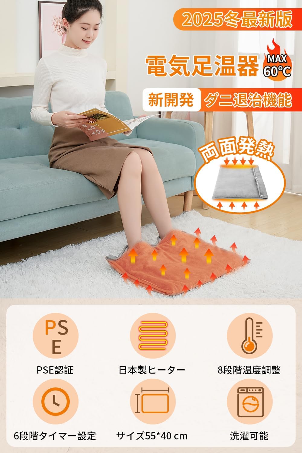 \期間限定 ポイント10倍/フットウォーマー 足温器 【2025新登場】 両面暖房 日本製ヒーター 電気足温器 30秒で速暖 8段階温度調節 6段階タイマー ダニ退治 フットヒーター 洗濯可能 55*40cm 男女兼用 省エネ 足冷え対策 寒さ対策 PSE認証済 日本語説明書付き