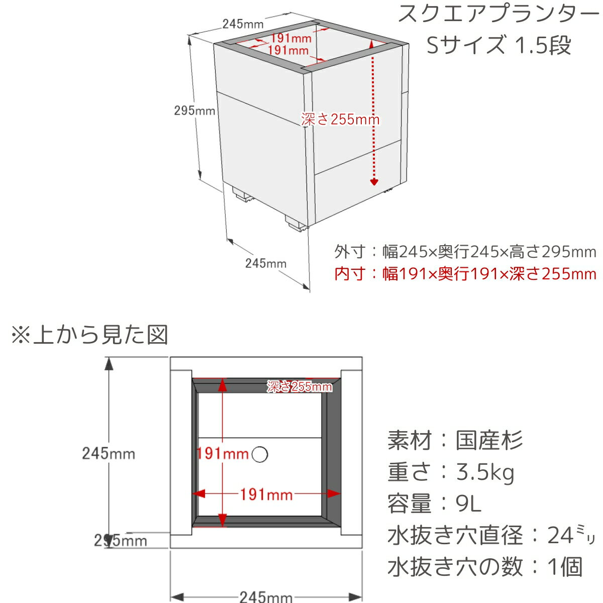スクエア プランターSサイズ(1.5段)幅245mm×奥行245mm×高さ295mmプランター単体/プランター+専用脚セット木製プランター 大型 屋外 家庭菜園 園芸用品 野菜 おしゃれ 鉢 カバー ウッドプランター 日本製 24.5cm 高さ29.5cm