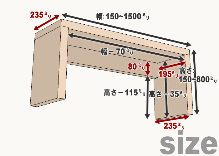 トップページ > OLD ASHIBA(足場板古材)ベンチシェルフ > 幅460〜600mm×高さ340〜420mm×奥行240mm その他のサイズ・商品の詳細はコチラ コの字型 ラック ベンチ シェルフ 棚 テーブル 踏み台 コンソールテーブル 玄関腰掛け 椅子 スタッキングシェルフ商品説明重ねて並べて楽しめる雑貨屋さんみたいなディスプレイシェルフです。アイデア次第で、テーブル、踏み台、腰掛け、飾り棚(収納棚)など様々な用途にご利用頂けます。サイズオーダー可能ですので、お好みのサイズを見つけて下さい。SPEC幅460〜600mm×高さ340〜420mm×奥行240mm※左右飛び出し寸法80mm(変更可能)後ろのみ補強(通常仕様)色無塗装塗装仕上げ7色>>塗装については、こちらをご確認下さい素材・生産OLD ASHIBA(足場板古材)※実際に建築現場で使用された無垢の杉足場板です。本社広島県廿日市市の工場で一つ一つ手作業で選別→水洗い→天日乾燥→研磨→製作→出荷を行っています。>>OLD ASHIBA商品ご購入前に必ずお読みください組み立て不要(完成品でお届けします)オプション前側の追加補強オプション可能ベンチや踏み台など人が乗る用途として使用される場合で、幅1000ミリ以上 または高さ500ミリ以上の場合、前後補強タイプをオススメ致します。通常仕様(補強板は後ろのみ)前側にも補強板をつけた仕様
