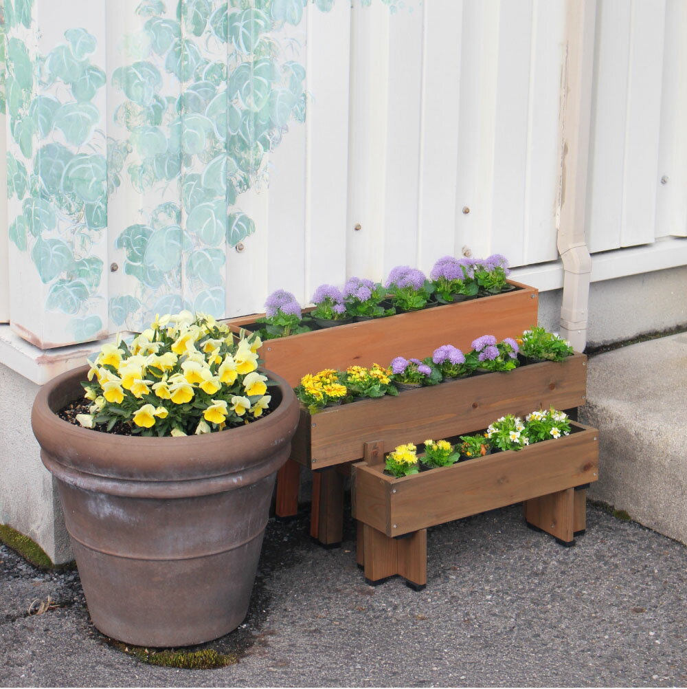 商品説明WOODPRO人気商品のダックスプランターよりもっと気軽に手軽に使えるスリムプランターが新登場!植林で管理された国産の杉材を使用し、広島県の自社工場で製造したスリムでシンプルなデザインが魅力の木製プランターです。2.5号〜3号のポット苗や多肉植物・サボテン、フェイクグリーンや100円均一の小さな観葉植物などを飾るのに最適。プランターは四角い幅116mmから横長の600mmまで5サイズ展開。専用脚(高さ100/200/300mm)と組み合わせれば、立体的なガーデニングも可能。ちょっとしたスペースでも映える、ナチュラルウッドのサステナブルな日本製ウッドプランターです。素材・生産国産杉>>樹種について本社広島県廿日市市の自社工場で一つ一つ手作りで生産色・塗装>>色見本請求はこちら(無料サービス)サイズ【サイズバリエーションは全15種類】・プランター幅:11.6cm/20cm/30cm/45cm/60cm※奥行11.6cm×高さ10.6cmは共通・専用脚高さ10cm/20cm/30cmゴム脚についてこの製品には、 下部にゴム脚がついています。ゴム脚と接した部分が色移りする恐れがありますので、屋内でのご利用の際には、ゴム脚の下に家具用のクッション材等を貼ってご利用ください。ポット苗の目安プランターに入るポット苗の目安数は下記となります。【2.5号】幅11..6cm:1個幅20cm:2〜3個幅30cm:3〜4個幅45cm:5〜6個幅60cm:7〜8個【3号】幅11..6cm:1個幅20cm:2個幅30cm:3個幅45cm:4〜5個幅60cm:6個※あくまでも目安です※土がいっぱいに入っているポット苗や変形しない鉢などは入らない可能性があります組立プランターは完成品(※底板は外れる仕様です)専用脚の高さ20cmと30cmは現地組み立て(要プラスドライバー。組み立て時間:10分程度)>>組み立て説明書はこちらポイント・プランターと専用脚にはゴム脚がついています・水はけを考慮して、底板には水抜き穴・隙間あり・屋内外兼用の塗装を施しているので、お家の中でも外でもご利用頂けます。・環境に配慮した国産材・国内生産品です注意事項・無垢の木材のため、数mm程度の寸法誤差が出る場合があります・専用の鉢受け皿はありません・専用脚は全てのプランターに組み合わせれるわけではありません(下記参照)・高さ10cmの専用脚はのせるだけです・無垢の杉材のため、節割れや欠けなどが含まれます・ご利用の期間に関わらず、軽微なひび割れなどが発生する場合があります・軽量な商品ですので、人通りの多い場所や強風が吹く場所では転倒する可能性があります植物のある暮らしをもっと気軽に、楽しく 多肉植物やサボテン、ポット苗やフェイクグリーンを 入れるだけで可愛いインテリアになるスリムプランター 当店人気商品のダックスプランターよりもっと気軽にもっと手軽に使えるスリムプランターが新登場! 植林で管理された国産杉を使用し、広島県の自社工場で製造したスリムでシンプルなデザインが魅力の木製プランターです。 2.5号〜3号のポット苗や多肉植物・サボテン、フェイクグリーンや100円均一の小さな観葉植物などを飾るのに最適。 プランターは四角い長さ116mmから横長の600mmまで5サイズ展開。専用脚(高さ100/200/300mm)と組み合わせれば、立体的なガーデニングも可能。 ちょっとしたスペースでも映える、ナチュラルウッドのサステナブルな日本製ウッドプランターです。 サイズバリエーション スリムプランターは、プランターの幅違いが5種類、専用脚が高さ3種類から組み合わせてご利用頂けます。 選べるカラー ガーデニングカラー6色からお選び頂けます。防腐・防虫成分が含まれた安全性の高い水性ステイン塗料を使用しております。においも少なく、メンテナンスもし易いのが特徴です。 >>塗装の詳細についてはコチラ >>無料の色見本はコチラ >>メンテナス用の水性ステイン塗料はコチラ >>「木との上手な付き合い方」はコチラ ポイント 専用脚について 専用脚は高さ10cm/20cm/30cmをご用意。幅の小さいプランターは一部専用脚と組み合わせてご利用頂く事が出来ませんので、ご注意ください。 >>組み立て説明書はこちら