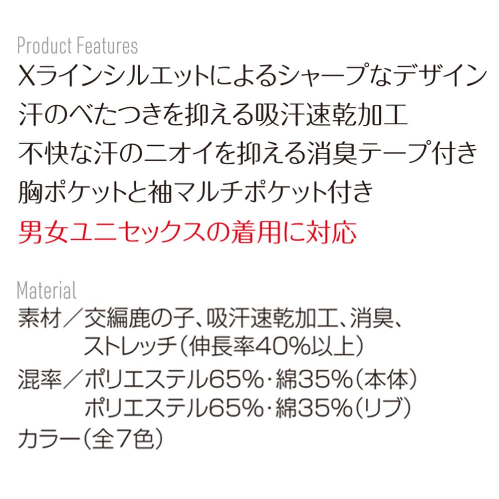 メール便をご利用の場合コチラを必ずご確認ください メーカーBURTLE バートル サイズ規格SS / S / M / L / LL / 3L / 4L / 5L 素材ポリエステル 65% 綿 35% カラー3 ネイビー / 24 キャメル / 29 ホワイト / 35 ブラック / 42 ロイヤルブルー / 47 サーフブルー/ 56 ミドルグレー 商品説明汗のべたつきを抑える吸汗速乾加工。不快な汗のにおいを抑える消臭機能付き。胸ポケットや袖にもポケット付き。SSサイズからあり女性の方や、小柄な方まで着用していただけます。 欠品時の対応メーカー欠品している際は、ご注文をキャンセルとさせて頂きますので予めご了承下さい。 返品対応未開封の場合のみ返品可返品をご希望の場合は、事務手数料として別途1,000円頂戴いたします。詳しくは『ご注文時の注意事項』をご確認下さい。 注意事項お客様のモニター環境などにより、カラーや素材感が実際の商品と若干異なって見える場合がございます。予めご了承下さい。サイズ表はメーカー公表サイズとなります。