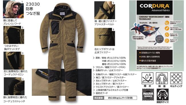 コーデュラストレッチ 23030 防寒つなぎ服 S - 6L表地 中綿 裏地 ポリエステル100%2023-24AW 新商品 山田辰 オートバイ ブランド