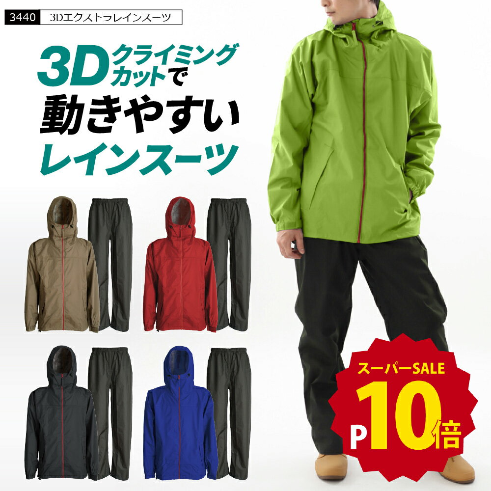 【ポイント10倍 12/4(木)20:00-12/11(木)1:59】レインスーツ メンズ 通学 自転車 雨 レインウェア 雨具 動きやすい レインコート 男性 女性 上下セット 大きいサイズ アウトドア かっこいい キャンプ 作業 釣り 3L 4L 送料無料 3440 3Dエクストラレインスーツ