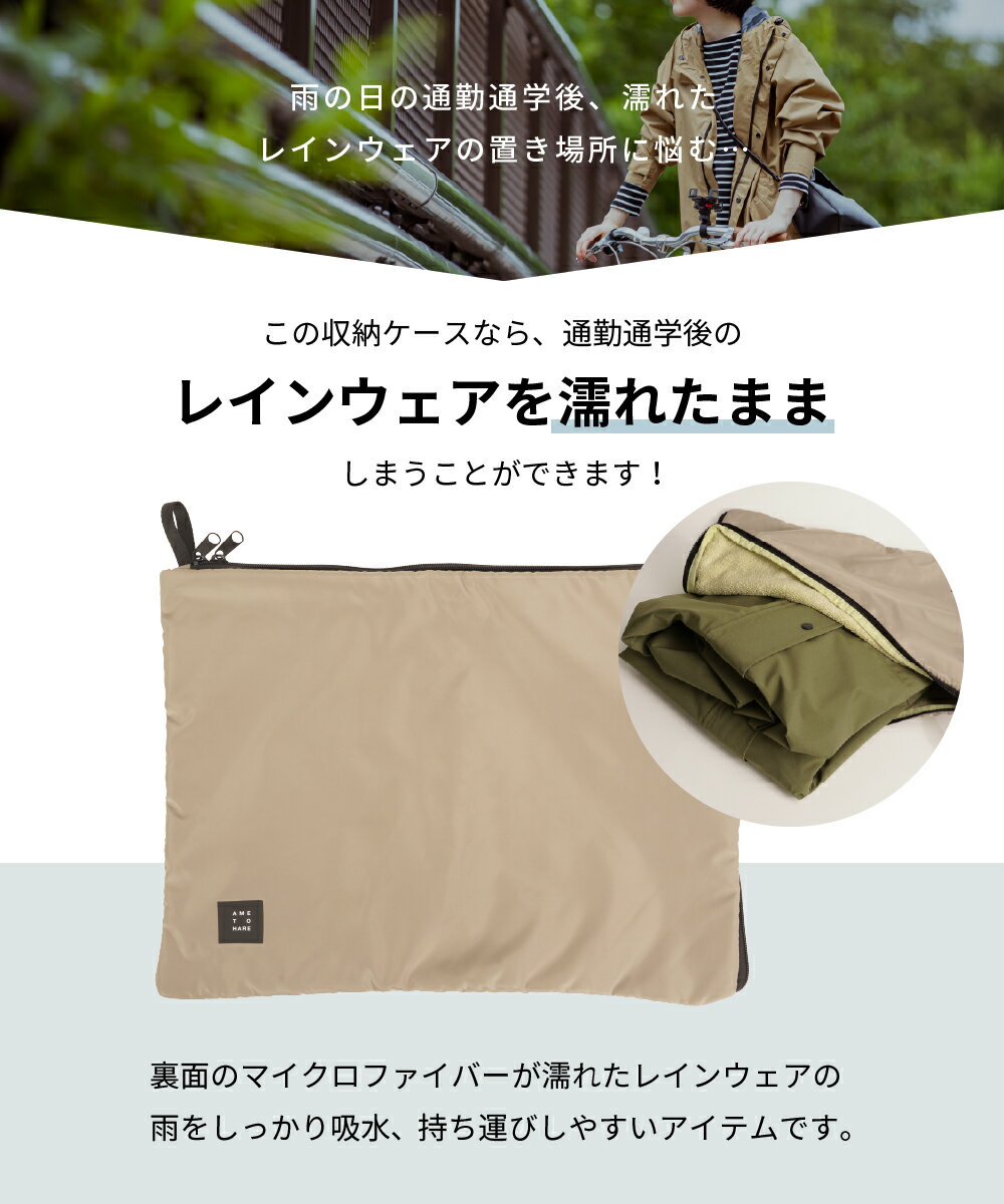 レインウェア 収納ケース 吸水 マイクロファイバー レインコート ケース 折りたたみ ポーチ L字ファスナー 大きく開く 吊り下げ ループ付き 撥水 防水 濡れたまま 収納 持ち運び カッパ 雨具 自転車 登山 アウトドア 通勤 通学 AH-901 レインウェア吸水収納ケース