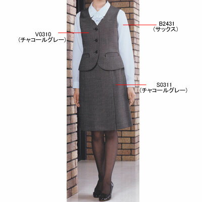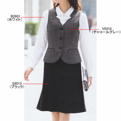 事務服・制服・オフィスウェア ピエ V0310-97 ベスト(3ツボタン) 11号・チャコールグレー