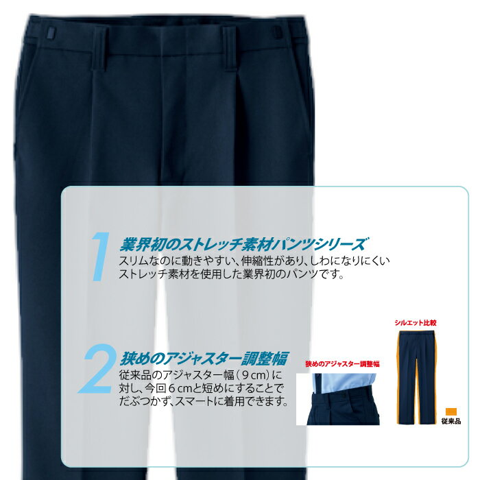 商品仕様・説明 【G5975 冬ストレッチアジャスターパンツ】 ◇メーカー:G-best ベスト ◇秋冬用 ◇素材 :ストレッチ裏面ギャバン(帯電防止素材) ◇混率:ポリエステル90%/綿10% ◇機能:アジャスター。ベルトルーフ幅広仕様。高耐光加工。帯電防止。NOアイロン。二重織。ストレッチ素材 ◇サイズ:S・M・L・LL・XL・4L・5L・6L ◇カラー:ネイビー 【詳細】 ◇スリムなのに動きやすい・伸縮性があり・しわになりにくいストレッチ素材を使用した業界初のパンツです ◇従来のアジャスターの幅は9cmですが・6cmと短めにすることでだぶつかず・スマートに着用できますCOLOR カラー DETAIL 商品詳細 SIZE サイズ 商品は全てメーカーよりお取り寄せ致します。ご注文欄の表示に関わらず、在庫欠品している場合がございます。 CUSTOMIZE カスタマイズ INFOMATION インフォメーション