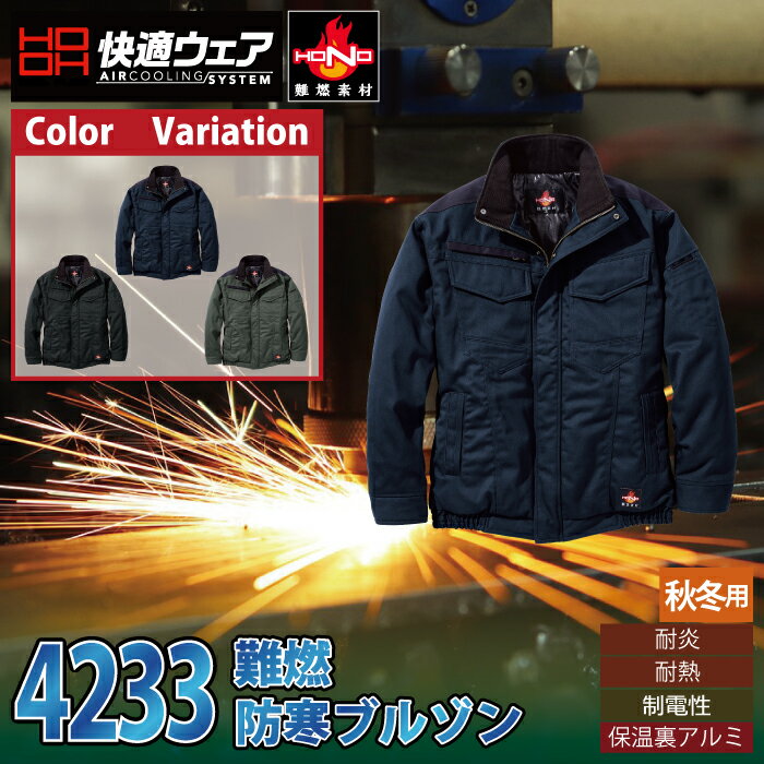 村上被服 HOOH 鳳凰 作業服 防寒着 4233 難燃防寒ブルゾン 4L-5L かっこいい 作業着 メンズ 燃えにくい