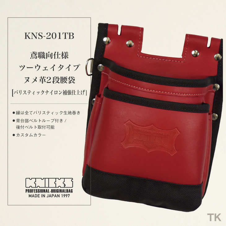 [即日出荷] KNICKS ニックス 鳶職向仕様ツーウェイタイプヌメ革2段腰袋 バリスティックナイロン補強仕上げ KNS-201TB カスタムカラー nx-kns-201tb-22-c1