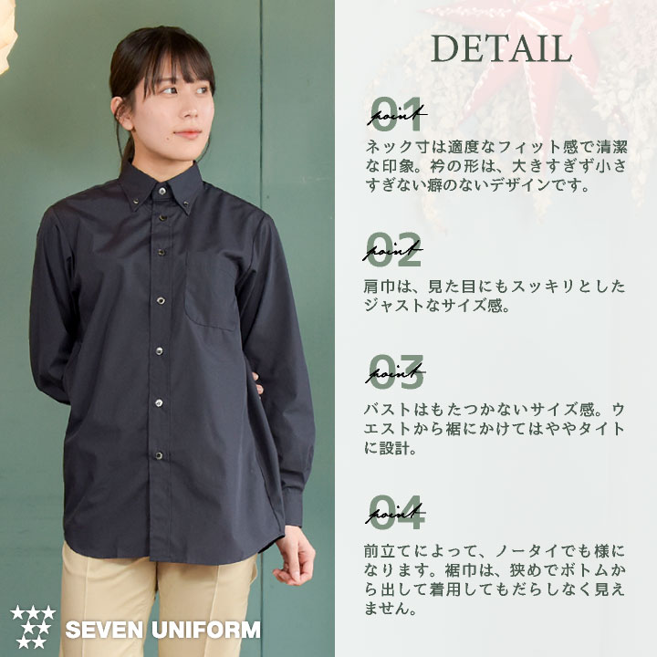 長袖 ボタンダウン シャツ 男女兼用 抗菌 防臭 セブンユニフォーム サービス 飲食 su-ch4453
