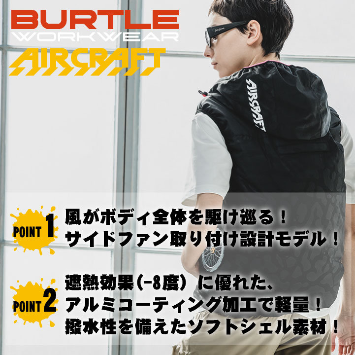 [即日出荷] [2025年新作] バートル 空調作業服 ベスト エアークラフト AIRCRAFT 春夏 メンズ レディース 撥水 防汚 遮熱 サイドファン フルハーネス 仕事服 おしゃれ 空調ウェア 涼しい かっこいい BURTLE ac2064 bt-k001v-t