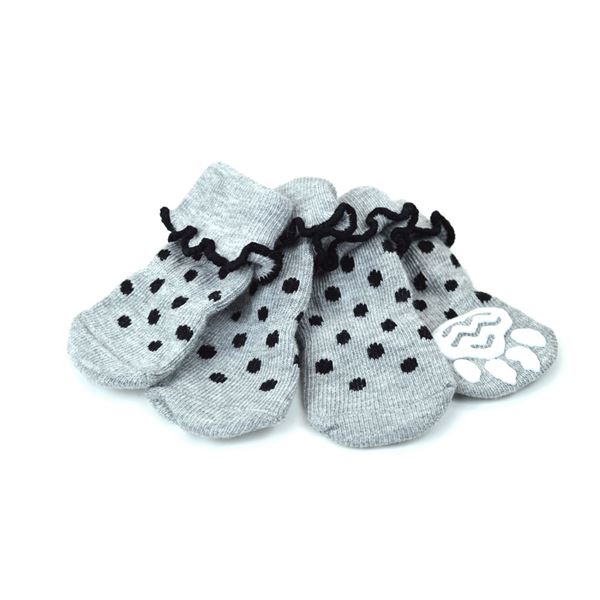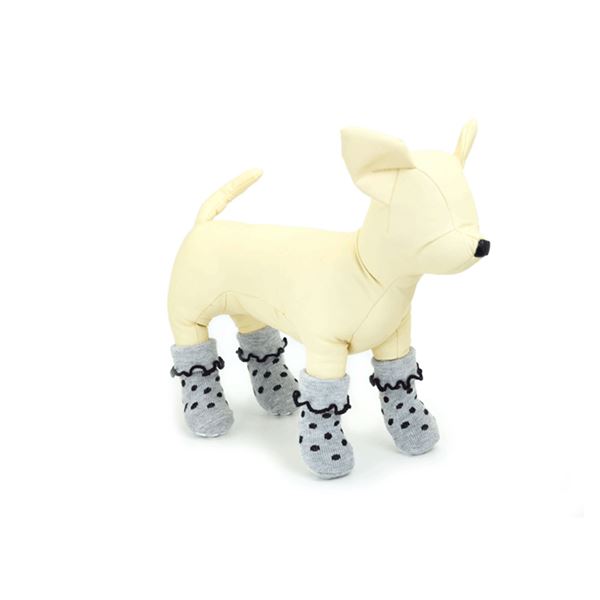 (まとめ)L'ange ペットソックス4足セット frill gray S 犬用靴下【×2セット】