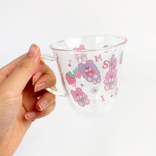 SWIMMERより丸みを帯びた形がかわいい耐熱ガラスマグが登場です。 クマといちごのファンシーな柄でオトメっちくな気分! 耐熱なのでティーカップとしてもおすすめ! きれいな発色の秘密は国内での焼き付け。 ガラスにもこだわった、透明度の高い耐熱マグカップです。 スイマーの世界観に浸ってホッとひと息つきませんか? ティーポット、ガラスマグ、タンブラー、キャニスター全て揃えてね♪ サイズ:約W115×H8.5×D8.5cm 容量:約270ml 耐熱ガラス 耐熱温度:120℃ ※画像はイメージです。