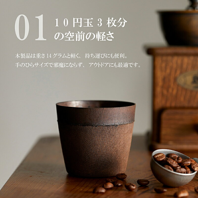 ●10円玉3枚分の空前の軽さ ●紙と“漆(うるし)” だけ、人にも地球にもやさしい。 ●紙コップなのに、洗剤で丸洗いOK。 人にも地球にもやさしい 新感覚漆器。 「KOMLA」 森から生まれ、森に還る。 木叢(コムラ)は、森を意味します。 木から生まれた紙を基材にして、同じく木から採取した樹液を原料にした「漆(うるし)」を塗布しています。 木が育つ森。本来の自然と共存し生きる力に 作り手から使い手へ―。 KOMLA3つの特徴 ・軽量コンパクト:持ち歩きにも便利 ・森に還る:原材料は、紙×漆 ・丸洗いOK:繰り返し使える 染織文化を支える紙と漆を使用 ◆染織文化にかかせない型紙 漆は防水性や染料に対する耐薬品性もあることから 着物の生地に文様を染めるための型紙の補強剤として用いられ、 伊勢型紙を代表に伝統的な染織文化を支えてきました。 ◆全面天然漆コート 漆をカップの内外両面に漆を塗布し漆層を形成させることで、 酸やアルカリ、塩分にも強くなり、どんな飲み物にもお使いいただけます。 [検索用:カップ 紙コップ 漆 アウトドア ドリンクカップ 水カップ ペーパーカップ デザートカップ 容器 テイクアウトカップ フードカップ ドリンク 食器 家庭用 紙 大き目 おしゃれ 漆紙カップ 漆器 丸洗い 軽量]
