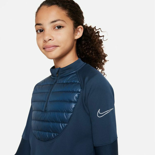 ナイキ トレーニングウエア トップス キッズ ジュニア DC9154-454 サッカーウエア トップス 練習着 サーマフィット アカデミー ウィンター ウォリアー トップ 長袖 運動着 防寒 冬用 キルト 中綿 部分 紺 最強翌日配送 送料無料 evid