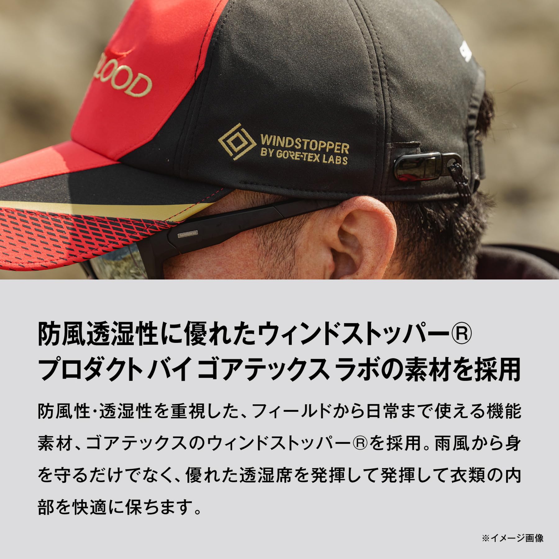 ・カラー:ブラッドレッド ・サイズ:S ・素材:[表]ポリエステル100%、[裏]ナイロン100%(e.P.T.F.E透湿防風加工)、[裏面]ナイロン100% 防風透湿性に優れたウィンドストッパー プロダクト バイ ゴアテックス ラボを採用したキャップ。 ウィンドストッパー プロダクト バイ ゴアテックス ラボ採用で防風透湿性に優れ、動きの多い釣でもムレにくく、小雨程度でも安心して釣りを楽しむことができます。また、強風時にはキャップストラップを装着することで対応できるようになっています。