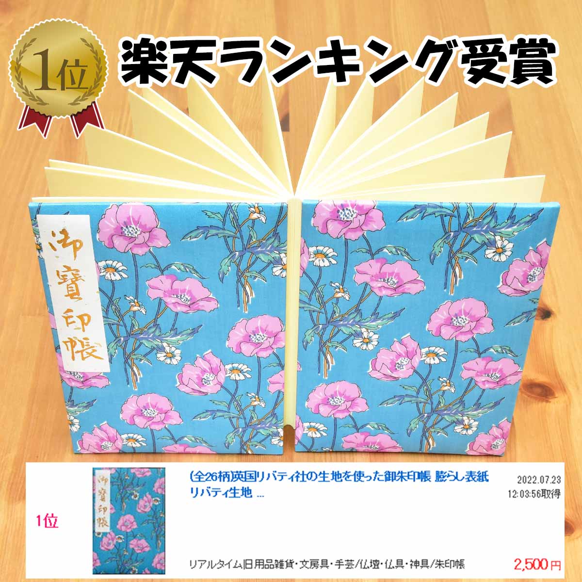 御朱印帳 高級 英国リバティ社の生地 かわいい 花 青 大判サイズ18x12センチ 60ページ ケース カバー 付き 鳥の子紙
