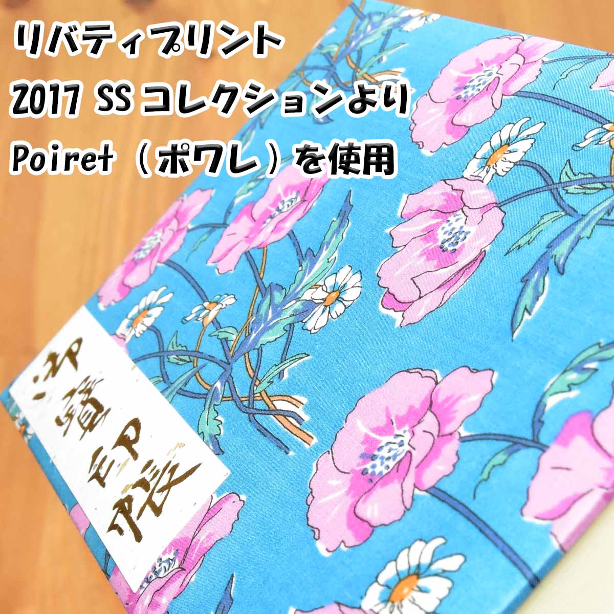 京都伏見の御朱印帳です。 京都の工房で1つ1つ手仕上げで制作しています。 御朱印は、平安時代より寺院で写経を奉納することでお印を受け、志を納める事(納経)で御利益を得るとされてきました。その後、江戸時代に入り寺社共に参拝して御朱印を集める習わしが広まったと言われています。 私たちが製造する御朱印帳の表紙の生地は、京都の金襴、緞子、ちりめん等を使用してます。 中身の紙については越前和紙の奉書、鳥の子紙を生地の柄によって使い分け、製本加工しております。 また、色焼けや汚れを防ぐ為、全ての商品にビニールカバーをお付けしております。 近年、御朱印帳を利用される方が増えております。 一人でも多くの方々が寺院や神社に気軽に出向き御陰様の心で手を合わす事で、平和な世の中になればと祈念しながら制作しております。 リバティプリントとは・・・ 英国ロンドンで100年以上の歴史をもつ「リバティ百貨店」のプリント生地です。 婦人服のブラウスやワンピース、バッグや小物、子供服やメンズ用品まで、高級百貨店等で一度はご覧になったことがあるかもしれません。 ブランドを代表する生地素材である「タナローン」生地を筆頭に、コットンボイル、マドラスチェック、オーガビッツ11号帆布、エアリーコット、ランタナ、コーデュロイ、シェラトンジャージ、シャンブレー、フランダースリネン等の様々な生地素材に、クラシカルな柄から現代的な表現を醸し出す柄まで、幅広いデザインが描かれています。 弊社ワールドクロスは製本生地のメーカーとして50年以上の歴史があり、確かな実績をもってリバティジャパン様と正規代理店契約を結んでおります。 高級生地の代表ともいえるリバティクロスの肌触りを、ぜひお手に取ってお確かめください。 ワールドクロスの御朱印帳でよく使われている「タナローン」は、上質な綿を使用したコットン生地で、リバティプリントを代表する生地素材です。 タナローンという独特の名前は、エチオピアのタナ湖の近くの綿花を原料として使っていた事から名付けられたと言われており、シルクの光沢や肌触りをコットンで実現するためにリバティロンドン社が独自に開発しました。 タナローン生地に使われている綿花は、繊維が通常の綿花よりも長い、長綿花といわれる種類が使われているので、薄くて軽く、織の密度が高くてしなやか。豊かなドレープ性があり、柔らかな肌触りが特徴です。 【Poiret (ポワレ) 】 1987年に描かれた花のデザインで1990年春夏コレクションに登場しました。 ラフに束ねられた美しいポピーとデイジーから構成されています。 【柄・色】 リバティプリント 2017年SSコレクション Poiret ポワレ 型番 3330109 色90AT 【生地・素材】 タナローン コットン 【サイズ】 大判サイズ:縦18cm×横12cm(B6変形) 【綴り・ページ数】 蛇腹折り/12山(両面換算48ページ分) 【生産】 日本国内(主に京都) 【ご注意】 モニターの発色の具合によって実際のものと多少色が異なって見える場合があります。