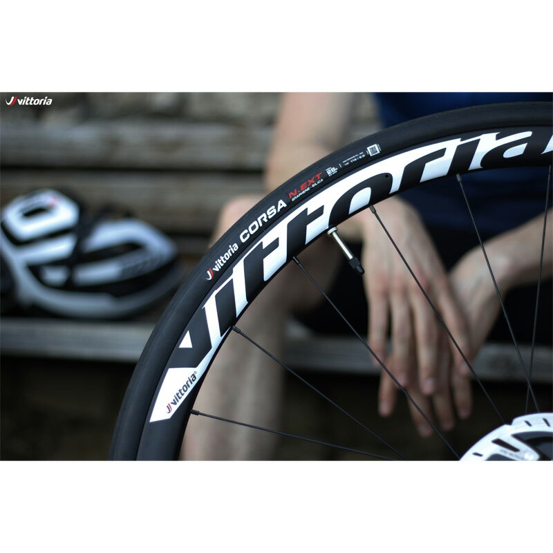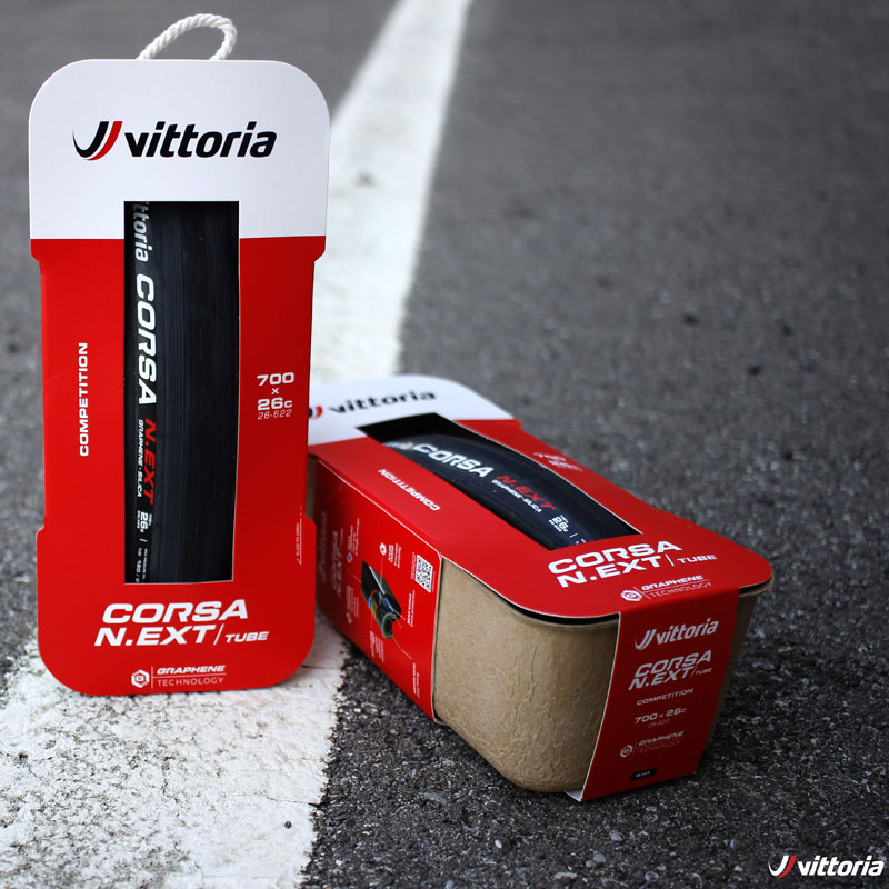 次世代タイヤ『CORSA N.EXT(コルサ・ネクスト)』誕生!プロレースシーンでのアイコン的なヴィットリア『コルサ』による、長く続くリーダーシップの経験にもとづき、ヴィットリアはレースにインスパイアされたパフォーマンスと究極の耐久性を発揮する新しいCORSAN.EXT (コルサ・ネクスト )をクリンチャーとチューブレスレディでラインアップに追加します。チューブレスレディでは、待望のフックレスリムにも対応(700×28c以上)。コルサ・ネクストはレースにインスパイアされたスピードとフィールに、ナイロンケーシング構造による高い耐久性をプラス。パフォーマンスを上げたいと願うレーサーの要望に応え、新開発のシリカ と グラフェンの新しいコンビネーションにより改善されたコンパウンドを採用。転がり抵抗・グリップ・耐摩耗性を向上しています。トレッドパターンは多くのワールドチームで実証されたプロ・コンペティションモデル『コルサ』を継承した縦溝を採用。速いペースでのライド時の転がり効率とスピード、コーナリング時の強化されたグリップとハンドリング性能を発揮します。耐久性にはトレッド表面下に高密度のプロテクションベルトを採用。100TPIのナイロンケーシングをセンタートレッドの下に3層のレイヤー構造とし、優れた耐久性を発揮します。【その他の機能】TWI(Tread Wear Indicator):タイヤの交換時期が一目でわかる様、トレッドゴムの一部に凹を設けています。フックレスリム対応:チューブレスレディモデルの28C以上はフックレスリムに対応しています。ビードタイプ:クリンチャーケーシング:ナイロン100TPIコンパウンド:グラフェン+シリカ重量:220g商品のカラー・サイズについて商品のカラーはディスプレイの種類等により、実物と異なって見える場合がございます。掲載商品の仕様、ロゴ等のデザインは改良のため、変更される場合がございます。また、メーカーが発表していない寸法や個人的なフィット感についてはお答えいたしかねます。あらかじめご了承ください。沖縄県への送料について 沖縄県への発送に送料無料は適用されません。購入金額に関わらず1,650円(税込)が通常送料に別途加算されます。