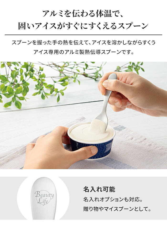 アイススプーン アイス専用スプーン アルミ製 日本製 国産 熱伝導スプーン 溶ける 名入れ可能 シンプル かわいい おしゃれ 食器