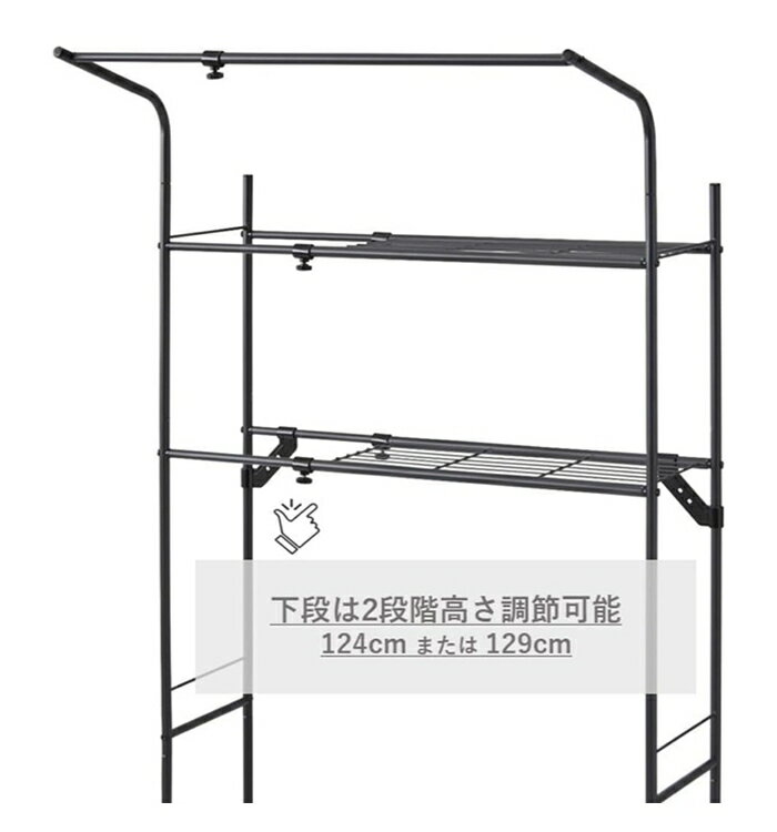 商品情報つやなしマット仕上げ。スタイリッシュでおしゃれなランドリーラックです。洗濯機の上のデッドスペースを有効活用します。前面にハンガー掛けが付いているので、軽量の洗濯物の室内干しにも使えます。下段の棚は2段階で高さ調節可能です!▼ 製品サイズ(約)[本体]幅59〜81×奥行53×高さ181cm[下脚部奥行]46cm[下段棚の高さ]124cmまたは129cm▼ 重量(約)3.85kg▼ 耐荷重(約)[全体耐荷重]11kg[棚]1段あたり:4kg[タオル掛け]3kg▼ 材料[パイプ・棚・タオル掛]スチール(粉体塗装)[樹脂部品]ポリプロピレン[ネジ類]スチール(メッキ)▼ 組立区分組立式▼ 生産国中国▼ カラーマットホワイト▼ キーワードランドリーラック 洗濯機ラック 2段 タオル掛け付き ランドリー収納 縦型 洗濯機棚 隙間収納 省スペース 収納棚付き シンプル 洗濯機上ラック 洗濯機収納 収納棚付きランドリーラック 幅伸縮式 タオル掛け付 下段高さ調整可能 収納ラック すき間収納 棚 収納 備品置き 収納 洗濯棚 組立式 便利