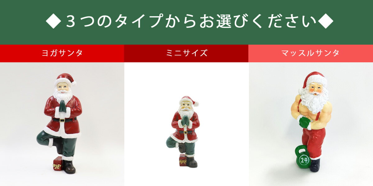 ヨガをやるサンタさん ヨガサンタ マッスルサンタ 橋のポーズ 体側のポーズ 三日月のポーズ 猫のポーズ クリスマス 飾り 置物 サンタクロース おもしろい グッズ サンタ ヨガ スポーツ ジム かわいい 面白いサンタ