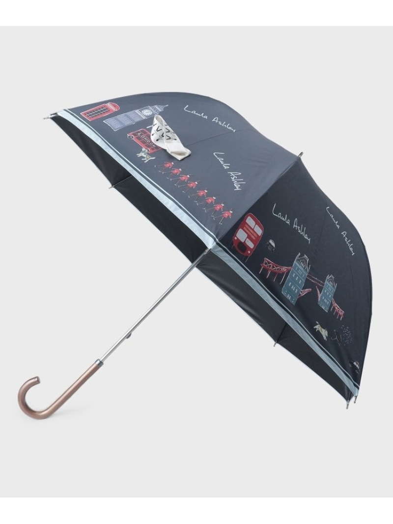 【STORY掲載!/UVカット/遮熱効果/晴雨兼用】ロンドン柄 長傘 LAURA ASHLEY HOME ローラ アシュレイ ファッション雑貨 傘・長傘 ネイビー ホワイト【送料無料】[Rakuten Fashion]