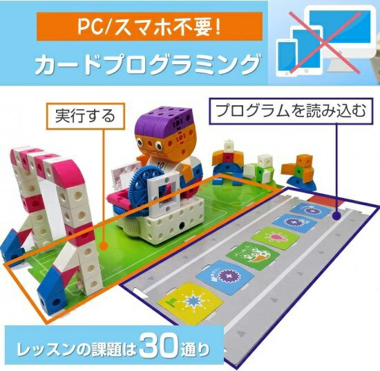 【商品名】プログラミング おもちゃ プローボ カードでプログラミング ブロック ロボット 知育玩具 (プローボ本体セ【カテゴリー】おもちゃ : プログラミング・ロボティクス【商品説明】【プログラミングで遊ぶ】パソコンやスマホなどデジタルデバイス使わず、「学ぶ」よりも「遊び」からスタート 【論理的思考を育てる】物事を順序だてて考え、計画的に実行する工程を、遊びながら自然に身に付けます 《カードでプログラミング》アクションカードを並べてロボットを動かすコードを作ります 《自分で作るキャラクターロボット》カラフルなブロックで、動物や乗り物などのロボットを作って動かします 《算数レッスンモード》数字とプログラミングを組みあせたレッスンモードもあります
