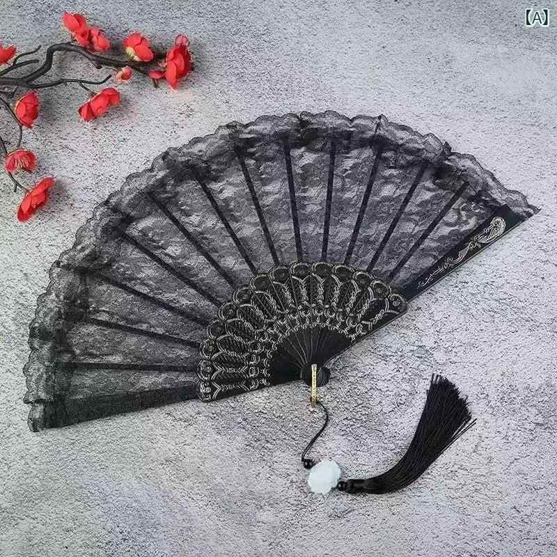 折扇 レディース ヨーロピアン レトロ レース チャイナドレス ダンス 古風 漢服 撮影 小道具 クラシック プラスチック 軽量 黒 白 金系 普段使い アクセサリー
