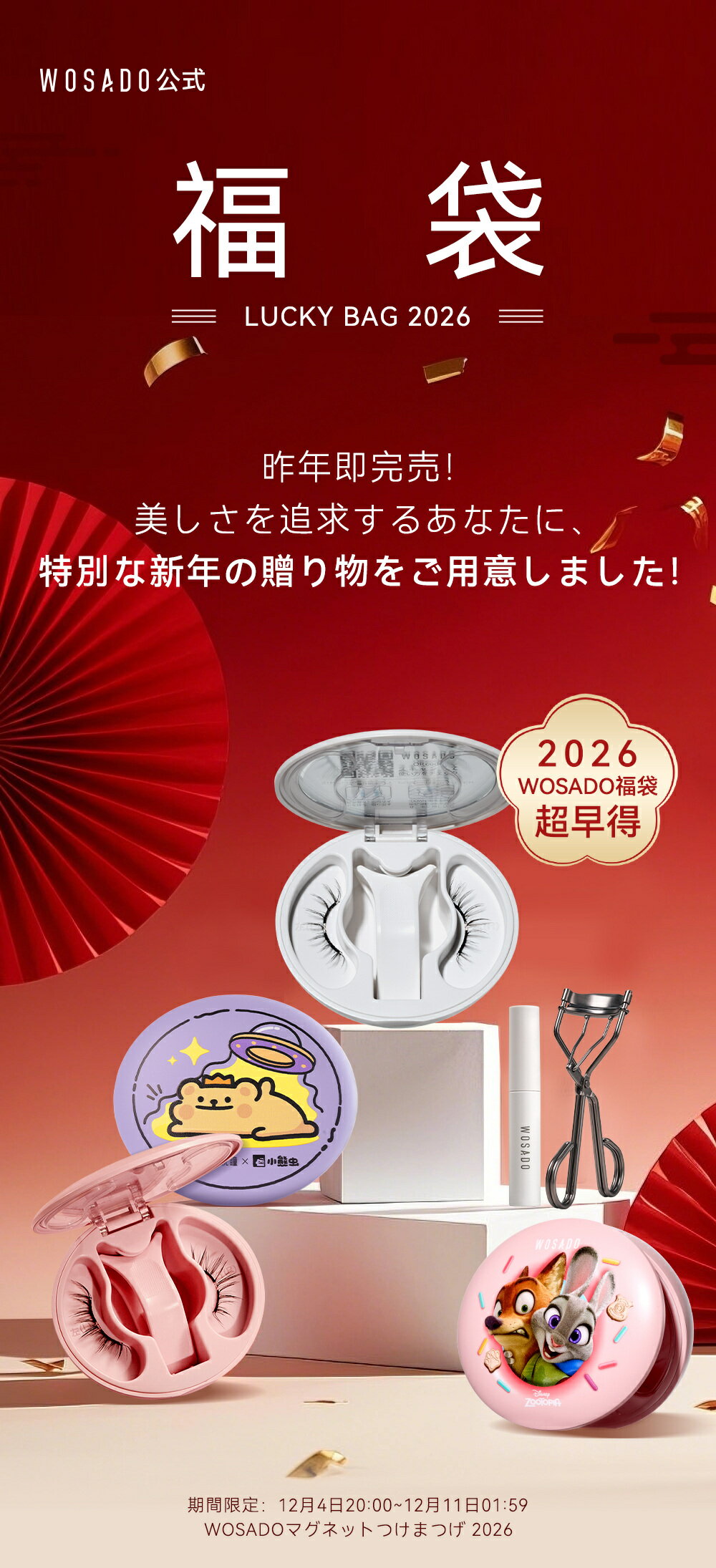 \新発売!12月4日からセール開催!/【WOSADO公式・福袋】マグネットつけまつげ 一体型 福袋 2025 2026 全タイプ 簡単装着 磁石式 接着剤不要 再利用可能 超軽量 すっぴん感 薄いメイク向き 磁気 つけまつ毛 初心者 公式正規品