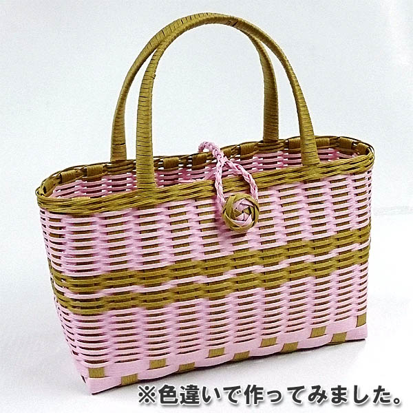 ☆1年中、いつも使えるMyバッグ作り☆ モカベースに濃紺がアクセント、2色使いが小粋なお買い物バッグ。 少し大きめなのが嬉しいサイズ。 ・カラーの組み合わせ・ モカベースに濃紺がアクセントカラー。 色目は10m販売にてご確認下さい。 お買い物やお出かけにちょうどいいサイズ。 12本取りから2本取りまで紙バンドをいろいろな幅で編んでいくのでおしゃれな風合いが楽しめます。 日常、気軽に使えるA4に近い横型タイプ。 所要時間:約6〜8時間程度(がんばって) 出来上がりサイズ:上)約W300×D110×H200mm 【お届け内容】 使用m分紙バンド オリジナル説明書1部 ハマナカエコクラフトではなく自社オリジナル ☆数量1のみ☆ 他同送の場合「宅配便」発送です。◎キットのメール便ご利用につきまして◎ 1通につき1点のみのご使用可能(メール便可のキットのみ)です。 ご発注時に複数をメール便ご指定いただいた場合、宅配便配送になります。 メール便の複数通ご利用の場合は1通毎にご発注下さい。