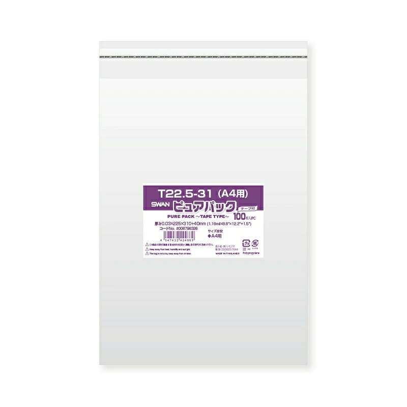 OPP袋 透明袋 テープ付き HEIKO シモジマ Nピュアパック T-A4 クリスタルパック 1000枚セット 100枚×10 【おすすめOPP袋】