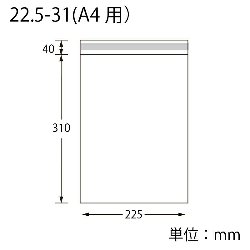 たくさん使いたい方はこちらのまとめ買いがお買い得です! つやがあり、透明度が高いOPP袋です。価格を低く抑える為、海外のフィルムを使用しています。 袋の両側を熱圧着して製造する為、のりしろが発生せず中身が綺麗に見えます。 すばやく封かんできるテープ付きタイプです。 この商品以外にもテープ付き、テープ無しや、包装するものに合わせて透明度や定番のA4やB5、B6などぴったりのサイズをご用意してます! ●入り数:1000枚(100枚×10) ●サイズ:厚0.03×幅225×高310+ベロ40mm(幅が開口部です。) ●材質:OPP(二軸延伸ポリプロピレン) >>単品100枚入りはこちら