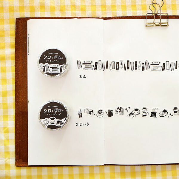 マスキングテープ マインドウェイブ MIND WAVE SHIROKURO シロとクロのマスキングテープ ダイカット ほん 95349 18mm×5m