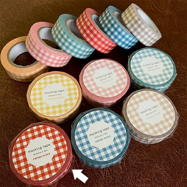 マスキングテープ PAPIER PLATZ パピアプラッツ クレス オリジナルマスキングテープ Check Red(チェックレッド)15mm×10m 72-020