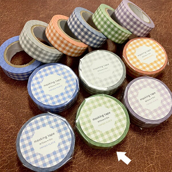マスキングテープ PAPIER PLATZ パピアプラッツ クレス オリジナルマスキングテープ Check Lettuce green(チェックレタスグリーン)15mm×10m 72-027
