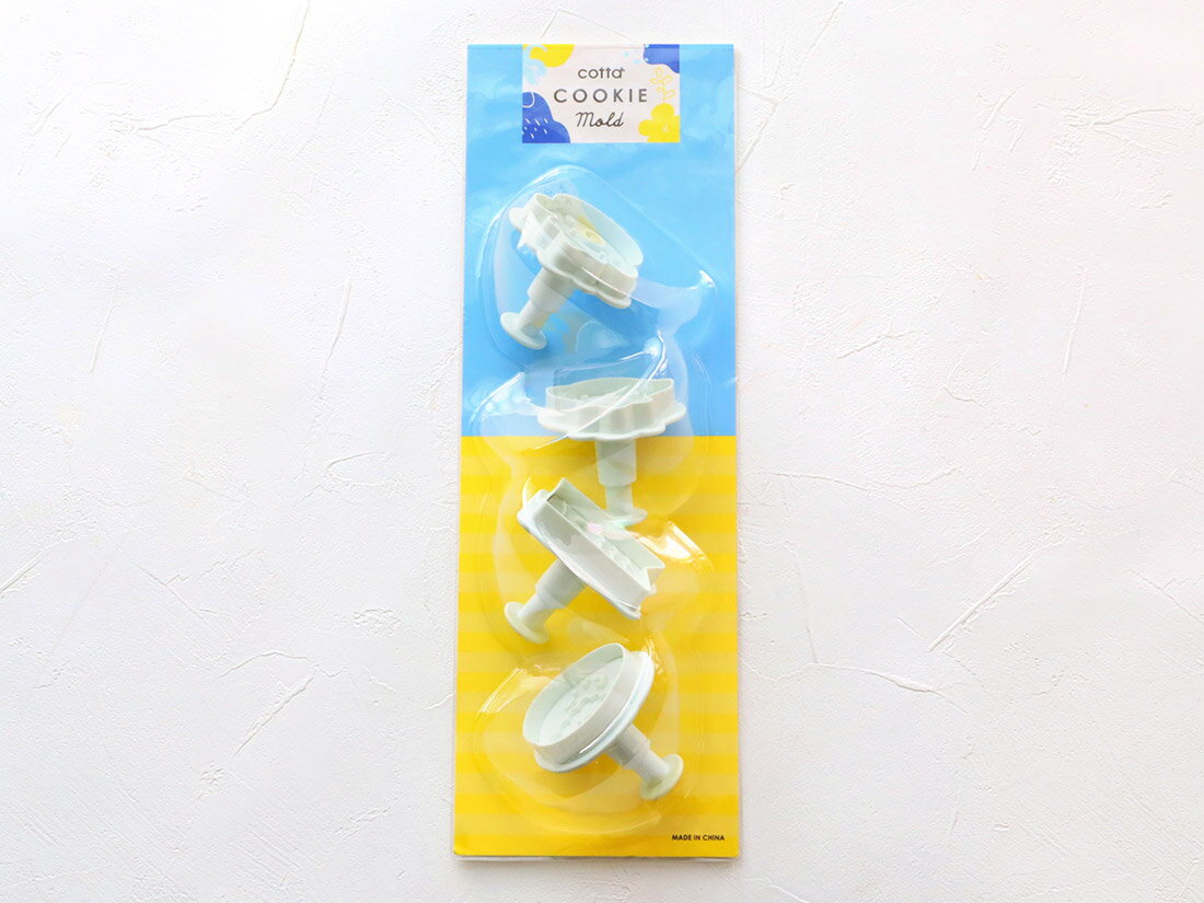 1購入あたりの内容量:1セット[規格]写真左から47×25.5/46×45/46×38.5/45×45mmABS[規格]写真左から47×25.5/46×45/46×38.5/45×45mmABS[機能・特徴]cottaオリジナルのスタンプ式クッキー型です。こどもの日をお祝いするためのかわいいデザインです。4個セット。[製造地]中国[外寸]写真左から47×25.5/46×45/46×38.5/45×45mm[使用上の注意]火の近くに近づけないでください。手作りでクッキーで思い出に残る、こどもの日のお祝いをこいのぼり・兜をかぶったくまさん・柏餅・金太郎がセットになったスタンプクッキー型。喜ぶ顔が目に浮かぶ、表情豊かなクッキーが作れます。おうちでのお祝いに、こどもたちへのプレゼントに、喜ばれること間違いなし!作り方は簡単!【1】ラップでクッキー生地を挟み、3mmルーラーを使ってめん棒でのばす。【2】強力粉をクッキー型にまんべんなくつけ、余分な粉を払う。【3】クッキー型を生地に押し、模様をつけるために突起部分をプッシュする。【4】模様がきれいについたら、天板に並べて焼成する。【Point】型抜きは、のばした生地をよく冷やしてから作業してください。生地がダレてきたら、いったん冷やしてください。焼きっぱなしでかわいい勇ましい表情からほんわか優しい表情まで、いろいろ楽しめます。しっかり模様がつくスタンプ式なので、アイシングなしでも素敵な仕上がりに◎アイシングやチョコペンでアレンジたくさんのカラーを使って、お絵描き気分でお子さまと楽しむのも◎カラフルな仲間たちで、かわいさアップ!ケーキにのせて、特別なお祝い手作りケーキやお店のケーキに楽しくデコレーションすれば、こどもの日のお祝いがさらに盛り上がっちゃいます!分解して洗えるすべて分解できるので衛生的です。写真のようにバラして、洗って乾かしたらまた元通り組み立てるだけ! プッシュ部分とバネはなくさないようにセットにしたまま、乾くまで大切に保管しておきます。ラッピングしてプレゼント♪かわいい仲間たちが見える透明な袋に入れて、「cotta こどもの日シール こいのぼり(4柄×2片)」やリボンで仕上げれば、素敵なプレゼントに!**********1購入あたりの内容量:1セット[規格]写真左から47×25.5/46×45/46×38.5/45×45mmABS[規格]写真左から47×25.5/46×45/46×38.5/45×45mmABS[機能・特徴]cottaオリジナルのスタンプ式クッキー型です。こどもの日をお祝いするためのかわいいデザインです。4個セット。[製造地]中国[外寸]写真左から47×25.5/46×45/46×38.5/45×45mm[使用上の注意]火の近くに近づけないでください。