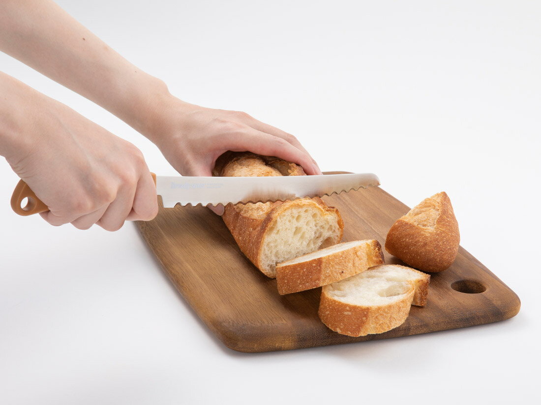 1購入あたりの内容量:1本[規格]全長330×刃幅30×柄の高さ16mm(刃渡り210mm、板厚1.5mm) [色]シルバー[素材]刃身:モリブデンバナジウムステンレス刃物鋼/柄:ポリプロピレン[機能・特徴]焼きたてのふかふかのパンや、表面が固いフランスパンを切ることができる波刃ナイフです。波型の刃付けはふんわりパンもつぶさずスライスできます。[製造地]日本[外寸]全長330×刃幅30×柄の高さ16mm(刃渡り210mm、板厚1.5mm)[耐熱温度]110℃[使用上の注意]この包丁はパン切り専用です。パンなどの柔らかいもの以外は切らないでください。破損または変形した場合には使用しないでください。洗う時には刃先に十分注意してください。乳幼児の手の届かない安全な場所に保管してください。