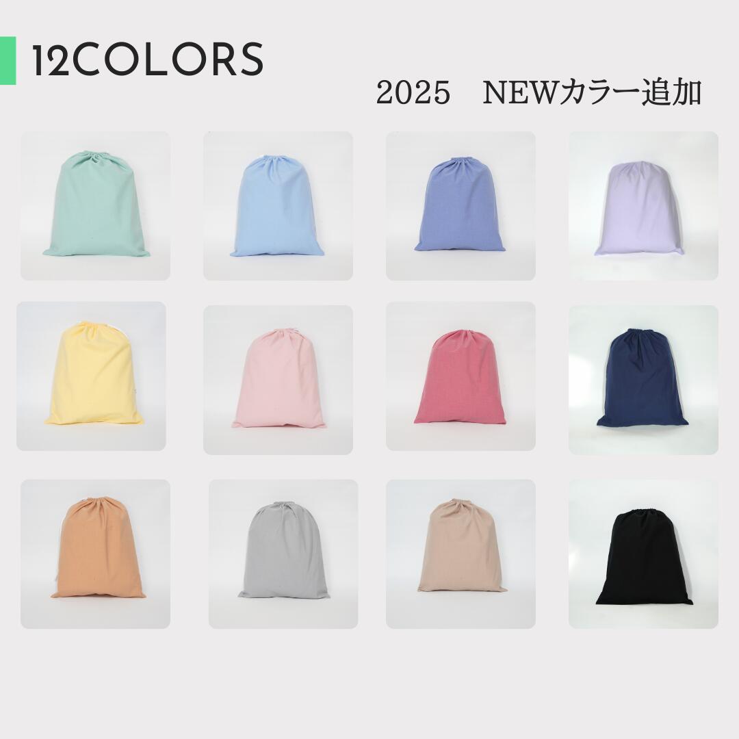 【ノーアイロン 名入れ バッグ 巾着 Mサイズ】筆記体 手ざわりにこだわった ゆるさら巾着 全12色