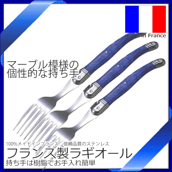 【メール便で送料無料】_3個セット ラギオール テーブルフォーク ブルー フランス製 ステンレス マーブル模様持ち手【RCP】【ワイングラス/カトラリー】【バー/カクテル】
