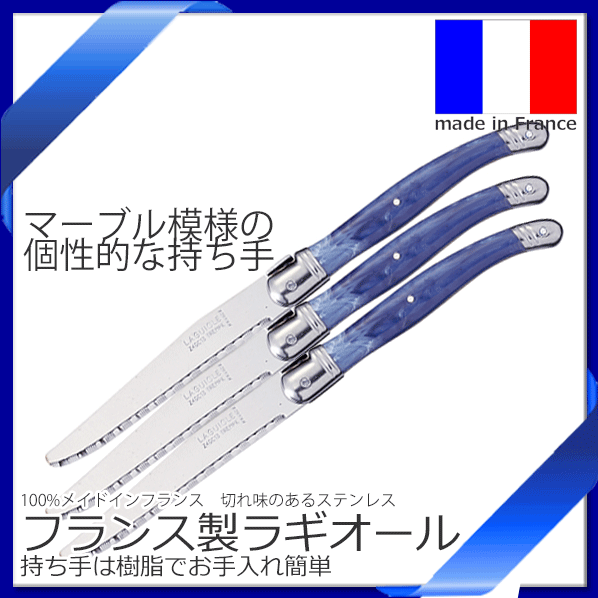 【メール便で送料無料】_3個セット ラギオール テーブルナイフ ブルー フランス製 ステンレス マーブル模様持ち手【RCP】【ワイングラス/カトラリー】【バー/カクテル】