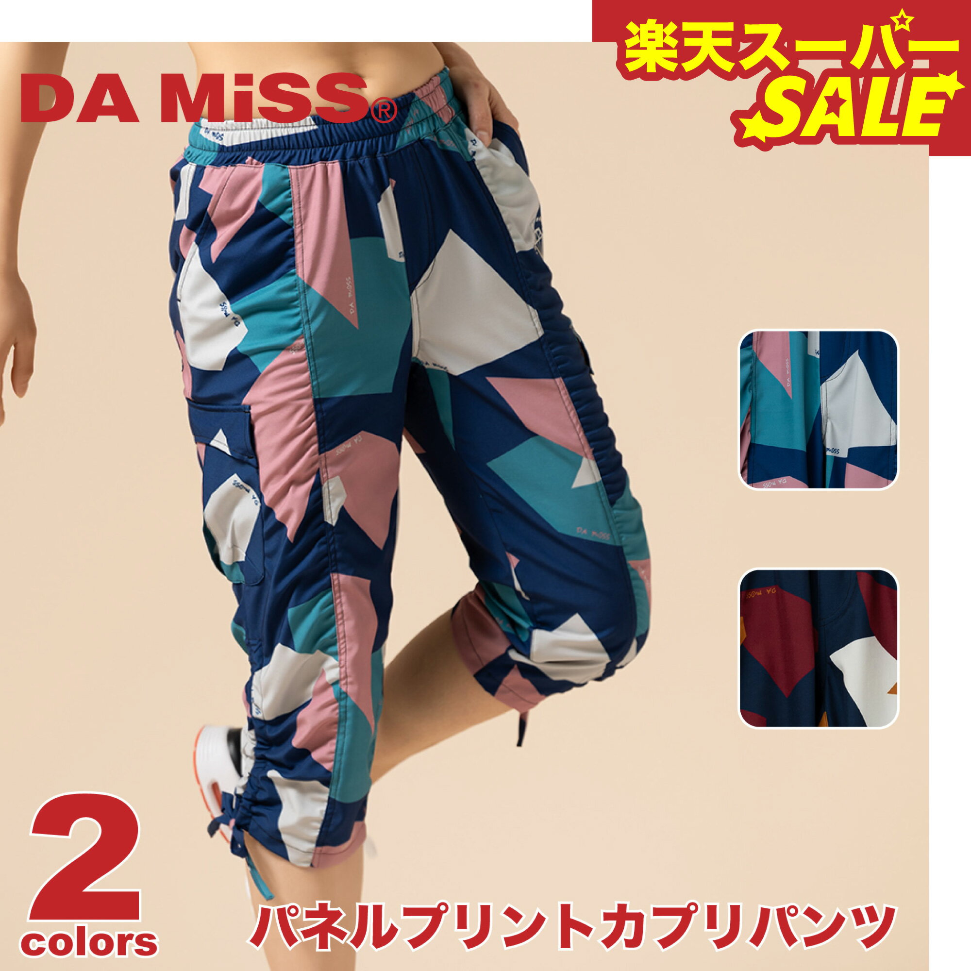 楽天スーパーSALE DA MiSS ダミス 全2色×2サイズ パネルプリントカプリパンツ フィットネス ウェア スポーツ ウェア トレーニング ウェア レディース ダンス エアロ 即日発送
