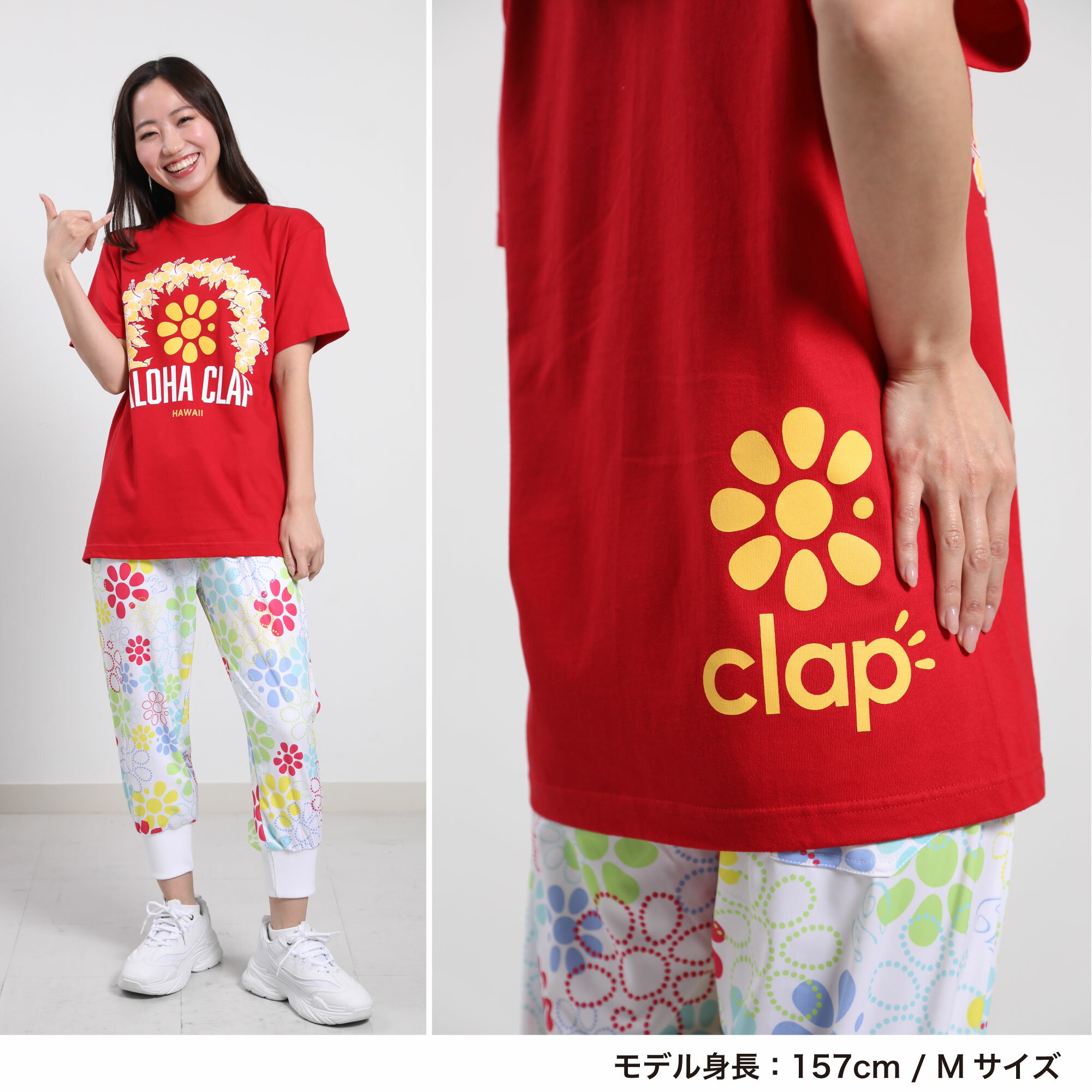 clap クラップ 4色×2サイズ ALOHA CLAP Tee レディース ダンス トップス Tシャツ フィットネスウェア ダンスウェア スポーツウェア トップス ピラティスウェア ヨガウェア コットン素材 半袖 サイズ展開 夏にぴったり