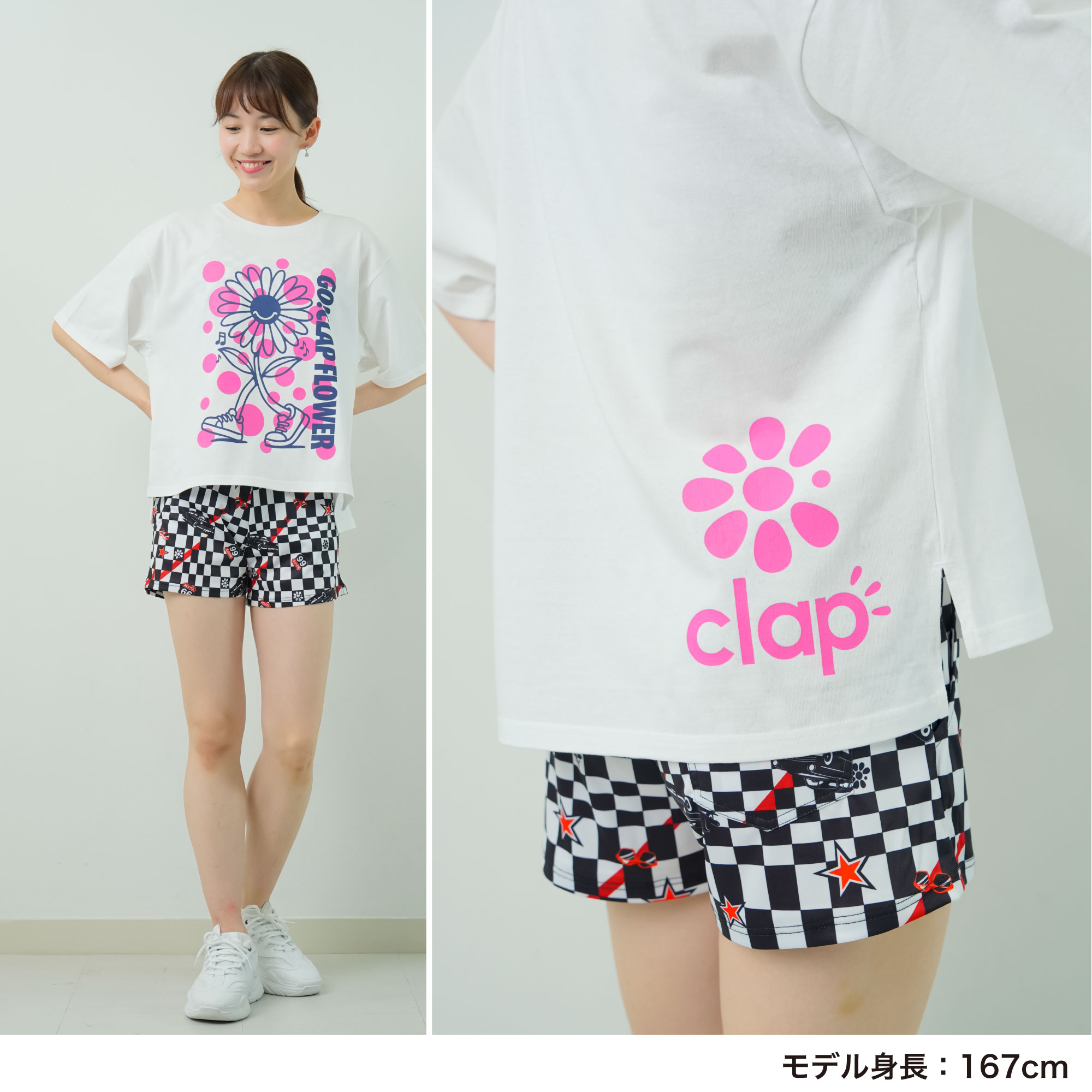 clap クラップ 4色 CLAP FLOWER BIG Tee レディース ダンス トップス Tシャツ フィットネスウェア ダンスウェア スポーツウェア トップス ピラティスウェア ヨガウェア コットン素材 ワイドシルエット 5分袖