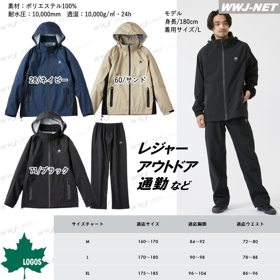 [即日発送] カッパ レインスーツ LOGOS by LIPNER 35010 レインウェア 上下 アウトドア 通勤 透湿 防水 撥水 雨具 防災 地震 台風 LOGOS(ロゴス) LG35010